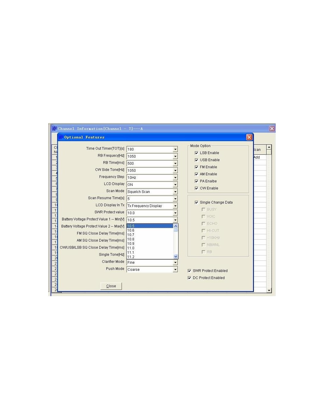 MENU 2 Várias funções: Ajuste de nível: tom CW, volume do bip da tecla, feedback de audição + bloqueio de tecla + proteção de tensão de alimentação + canal de emergência + ECHO ajustável + (+) função 10Khz + TX Noise Gate
